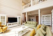 Первый этаж: прихожая, две гардеробных, кухня, столовая, гостиная, спальня, гостевой санузел, постирочная.