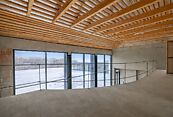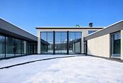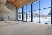 Первый этаж: холл, гостиная-столовая со вторым светом и выходом на террасу, кухня, мастер-блок (спальня, кабинет, ванная комната, гардеробная), гостевой санузел, кладовая, постирочная, СПА-зона (сауна, хамам, комната отдыха, санузел с душевой), тренажерный зал/игровая, гараж на 2 машины, котельная, кладовая, квартира для персонала с отдельным входом (кухня, спальня, санузел);