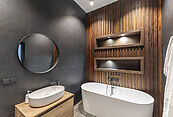 В доме выполнена отделка по индивидуальному проекту, в современном стиле с использованием дорогих, качественных материалов. Благодаря высоким потолкам и панорамными окнам пространство наполнено воздухом и светом. Эксклюзивные дизайнерские решения придают уникальность внутреннему пространству дома.