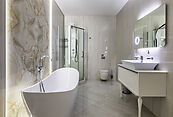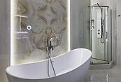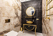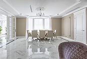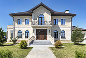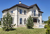 Особняк отличает премиальное качество строительства. Фасады облицованы дагестанским белоснежным песчаником, который своим качеством и составом не уступает граниту. Несущие стены выполнены из керамических блоков – безопасного для здоровья и натурального материала, который отлично удерживает тепло. На крыше уложена натуральная черепица.
