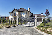 На участке площадью 24,45 сотки выполнен изысканный ландшафтный дизайн, много свободного пространства, благодаря грамотному расположению особняка.