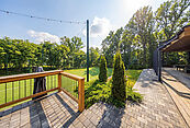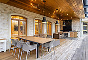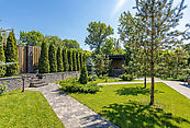 Приватная территория оформлена с учётом высочайших стандартов комфорта и эстетики: персональный теннисный корт — идеальное пространство для спортивных тренировок; зона барбекю с продуманной эргономикой для дружеских встреч на открытом воздухе; просторная терраса, предназначенная для приёмов и отдыха в кругу близких.