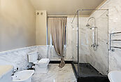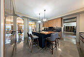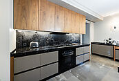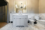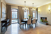 В отделке и оснащении дома использованы материалы и оборудование премиального сегмента: сантехника Imperial — эталон британского качества и дизайна; кухонная техника Smeg — сочетание функциональности и эстетики; мебель Devon & Devon — воплощение английской классики и утончённого стиля; климатические системы Mitsubishi — гарантия комфортного микроклимата в любое время года.