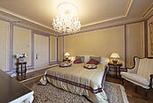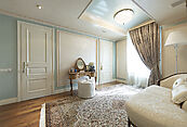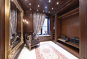 Второй этаж: холл, кабинет-библиотека, большой мастер-блок (гостиная, большая спальня с дровяным камином, выходом на балкон, гардеробной с “островом”, санузлом с ванной и душевой), спальня с выходом на балкон и своей гардеробной, санузлом и ванной, спальня с гардеробной, санузлом, душевой и ванной.