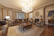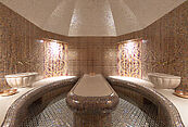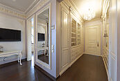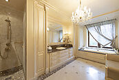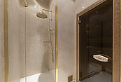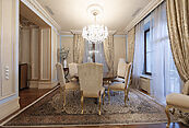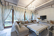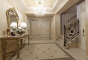Цокольный этаж: холл, винная комната, комната отдыха с TV-зоной, душевая, хамам, санузел, котельная, щитовая, постирочно-гладильная, две кладовые комнаты, чемоданная комната, блок для персонала (гостиная-спальня, кухня, санузел с душевой);