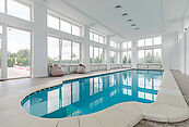 первый этаж: душевая, кухня-столовая, рабочая кухня, прихожая, гостиная с камином, кабинет, 1/2 санузла, санузел, бассейн, сауна, гараж, гардеробная, кладовая (3 шт.), котельная, постирочная, серверная, терраса, техническое помещение, холл