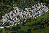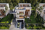 На территории расположены 48 резиденций площадью от 450 до 790 кв. м на участках от 6,5 до 14 соток. Все дома построены и готовы к заселению — будущие владельцы избавлены от шума и неудобств, связанных со строительными работами. Резиденции выполнены в минималистичном стиле с панорамным остеклением и эксплуатируемыми кровлями, которые гармонично вписаны в ландшафт. Дома продаются без внутренней отделки, что позволяет реализовать индивидуальные дизайнерские решения.