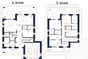 Второй этаж: холл, две или три спальни, два или три санузла, одна-две гардеробные, один-два балкона.