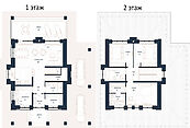 Первый этаж: крыльцо, прихожая, гардеробная, кухня, гостиная, столовая, санузел, спальня, холл, кабинет, сауна, кладовая, постирочная, терраса, гараж;