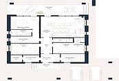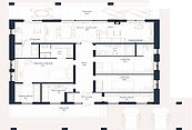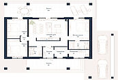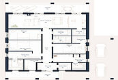 Первый этаж: прихожая, холл, кухня-гостиная, три спальни, одна или три гардеробные, два-три санузла, постирочная, одна или две кладовые, зона отдыха с душевой, парная, терраса, крыльцо.